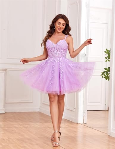 - Spaghettirem spets korta hemkomstklänningar för tonåringar tyll korta balklänningar cocktailklänningar