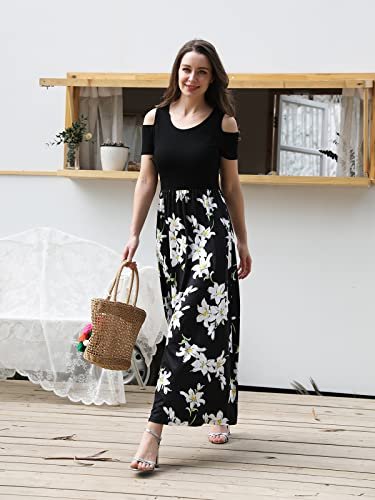Den kalla axeldesignen kan göra ditt nyckelben mer vacker och ser sexig och elegant ut. Höglängd maxiklänning gör att du ser längre och smalare ut, och det kan också blockera låren från solens exponering på sommaren. Två sidofickor gör det bekvämt att bära dina telefoner eller andra föremål