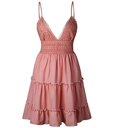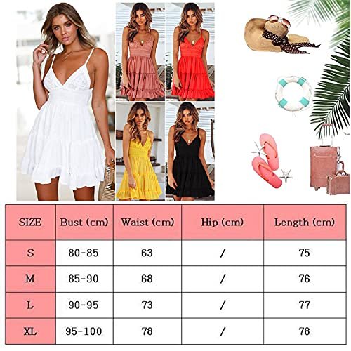 - — 【Glänsande stjärna】: Ärmlös, volanger, mini, V-ringning, A-linje, rygglös, rosett, med spetsdesign. Denna eleganta och söta klänning är ett måste för varje garderob, en oumbärlig klänning för din garderob, du måste vara den lysande stjärnan när du klär den på stranden.