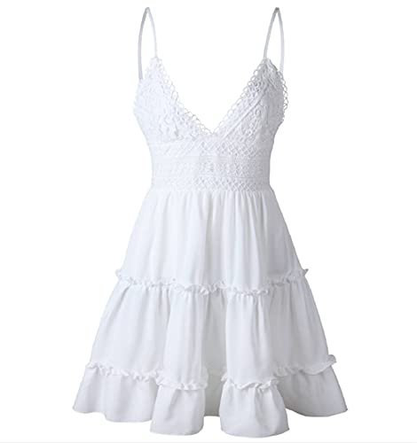 — 【Glänsande stjärna】: Ärmlös, volanger, mini, V-ringning, A-linje, rygglös, rosett, med spetsdesign. Denna eleganta och söta klänning är ett måste för varje garderob, en oumbärlig klänning för din garderob, du måste vara den lysande stjärnan när du klär den på stranden.