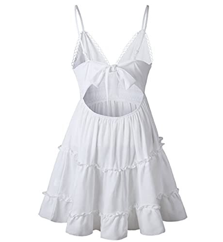 — 【Modedesign】: V-ringad med tunna remmar och rosett på baksidan. Det är väldigt moderiktigt, den här klänningen är en trendig look för alla medan du klär den som du vill för en avslappnad chic look eller till och med för en formell händelse!
