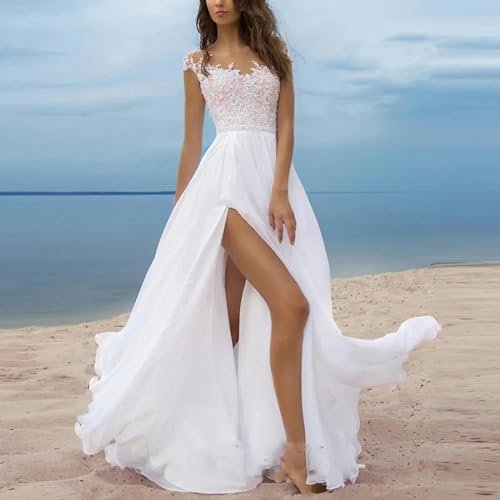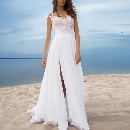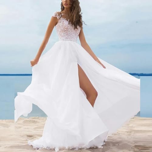 - Höj din stil med vår eleganta vita sommarbröllopsklänning. Det invecklade spetsplåstret med spets och glidning ger en touch av förfining, vilket gör dessa vita klänningar till ett show-shoppingval för alla formella evenemang.