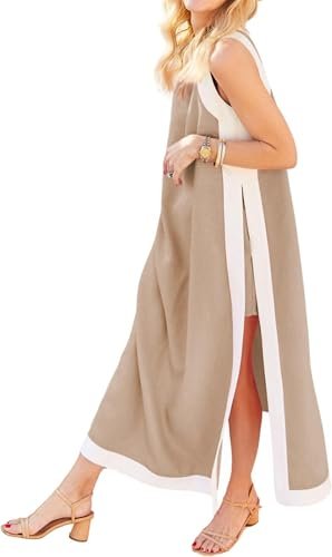 Funktioner: Tvådelade shorts med färgblockdesign, bohemisk stil, mexikansk längd, en lång tunikaklänning, en klänning med höga sidoslitsar, matchande shorts med elastisk midja och fickor, strålande vit trimma och en blandning av silhuetter från skräddarsydda passformer till flödande mönster, ärmlös rund hals, är perfekt för din sommarplan