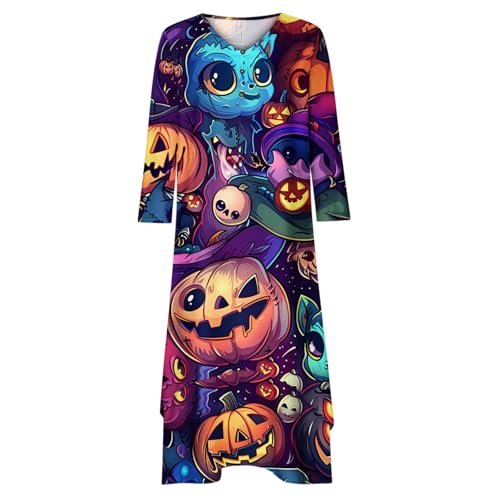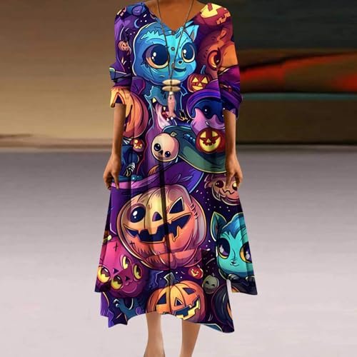 Vardagliga Halloween-tryckta lösa klänningar, oregelbunden fåll, klänning, 3/4-ärm...