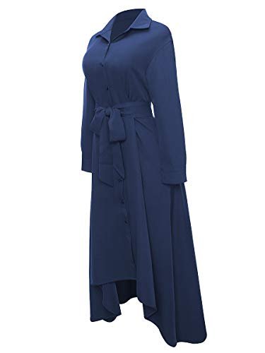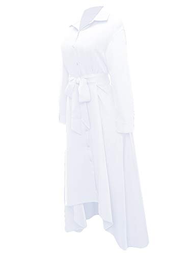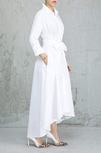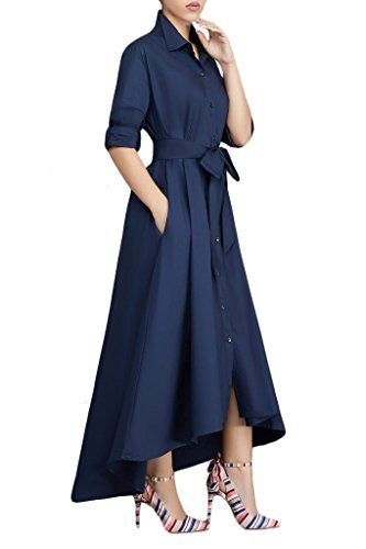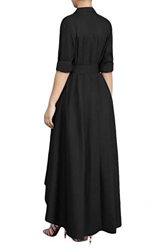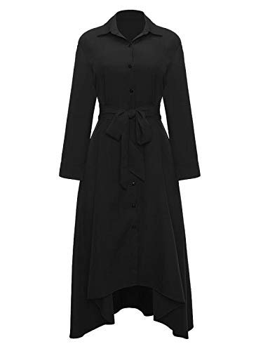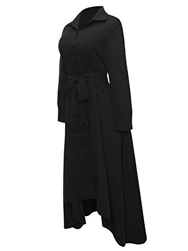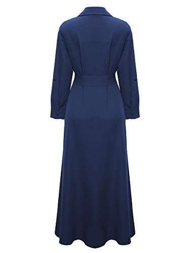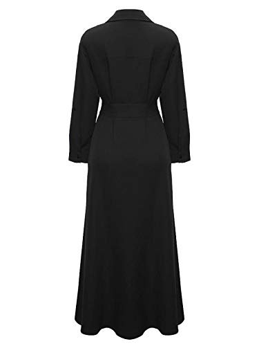 VERWIN Långärmad lös elegant maxiklänning med knappar för...