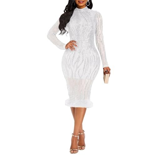 VERWIN Paljetter lappverk bodycon klänning dam långärmad klänning...
