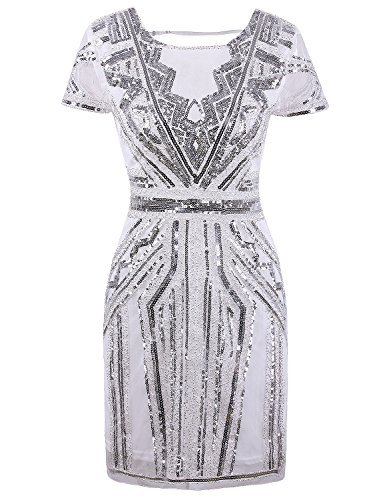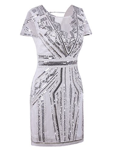 Vijiv 1920-tal Korta Balklänningar V-hals Inspirerade paljetter Cocktail...