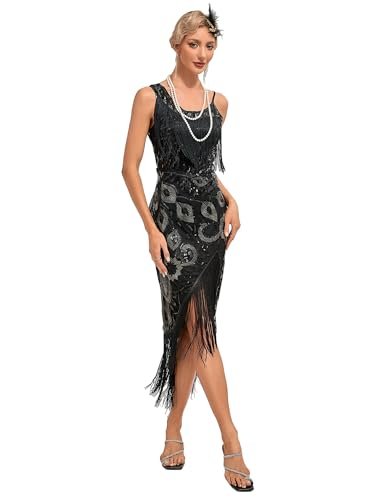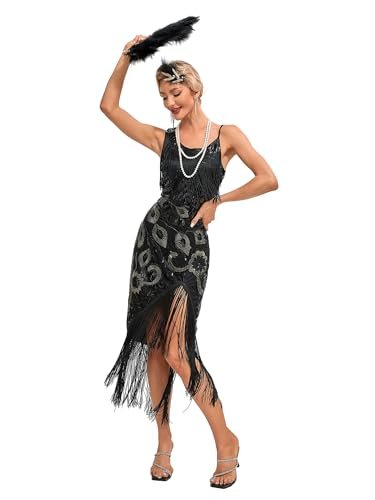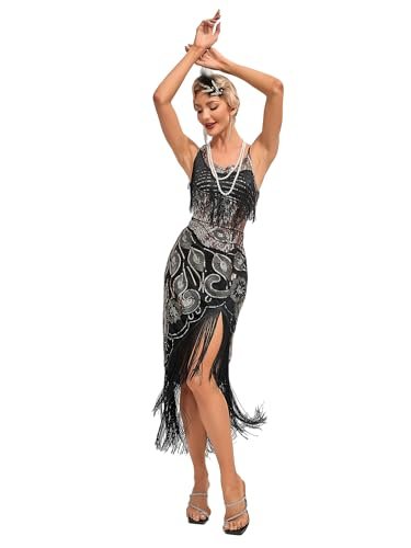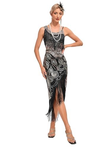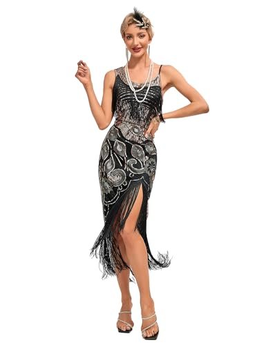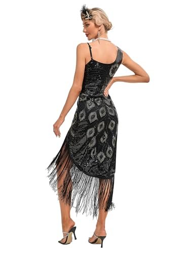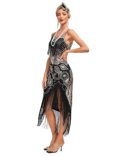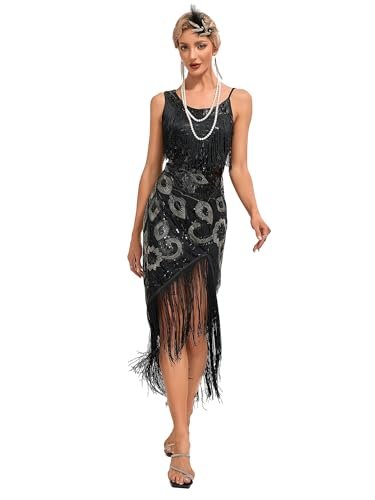 Viloree Dam 1920-tal flapperklänning paljetter fransklänning glittrande dansklänning...