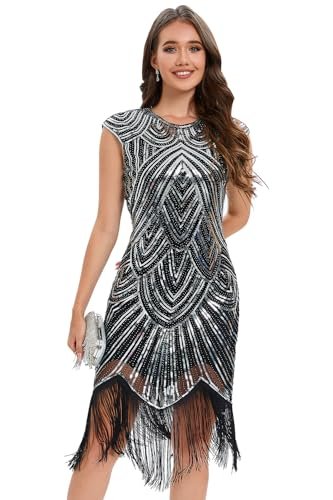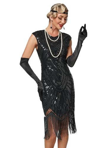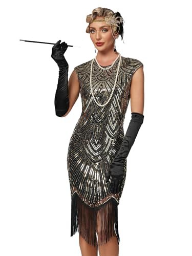 VILOREE Damklänning full av paljetter, 20-talsstil, rund halsringning