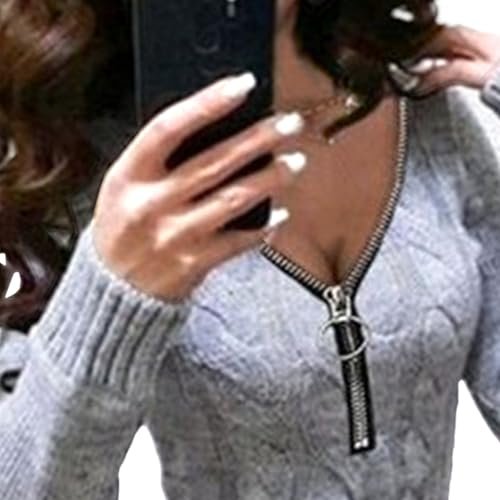 Funktioner: Denna tröjaklänning med V-ringad dragkedja har en siluett med smal passform, långa ärmar och finstickade detaljer. Dragkedjan i halsen möjliggör justerbar styling, medan den avslappnade men eleganta designen smickrar din figur vackert.