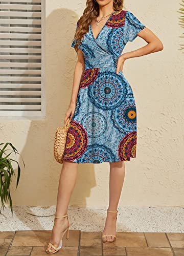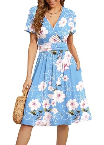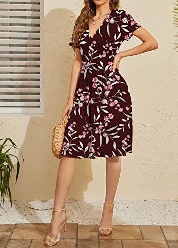 - Funktioner: Kortärmad klänning, V-ringad plånbok, A-linje, blommönster, sommarklänning med fickor, avslappnad swing klänning, blommig sundress, lång knälång klänning, empire midja klänning
