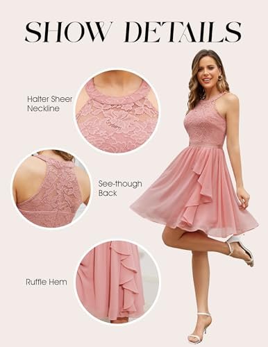 - Ärmlös nackhållare cocktailklänning knälängd: Den transparenta urringningen betonar kurvorna på ditt nyckelben och axlar och visar din charm. Den elastiska linningen och den smala midjedesignen kan framhäva din midja bättre. Blommig volanger ger elegans till hela blomklänningen.