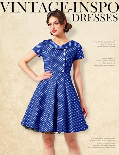 - Vintage cocktailklänning: den åtsittande toppen gör att den känns som gjord för dig, den unika Peter Pan-kragen är så söt och elegant, och den veckade kjolen med hög midja betonar din figur perfekt. Visa din charm i denna vintage-rockabilly-cocktailklänning.