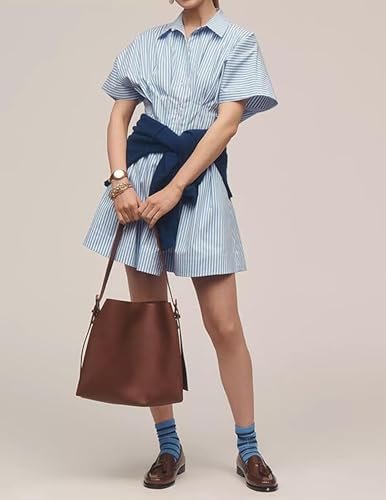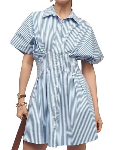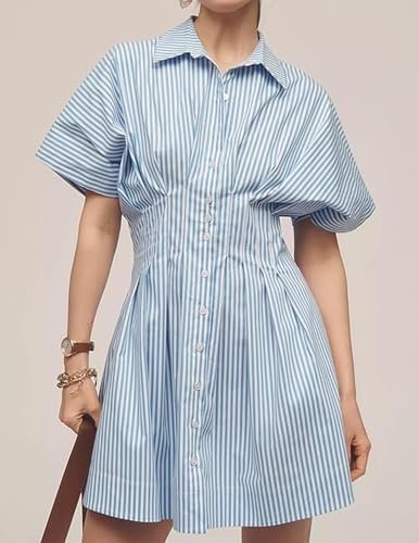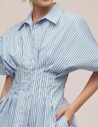 Modemixelement: Den här sommarklänningen smälter olika modeaspekter med en knapp-up-design som lägger till en vintage vibe, medan ruffle accenter ger elegant djup. Randiga tryck levererar ett tidlöst och elegant utseende, och dess konstruktion av korsettstil accentuerar den kvinnliga midjan för en distinkt modeöverklagande.