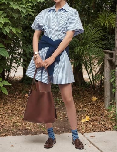 Andningsbar lätt sommartyg: Tillverkad specifikt för sommaren är den 3/4 hylsa långa skjorta klänningen gjord av lätt, luftigt material för att hålla huden andas bekvämt. Det säkerställer svalhet under värmen samtidigt som en graciös drapering och kvalitetskänsla har en graciös tygkänsla.