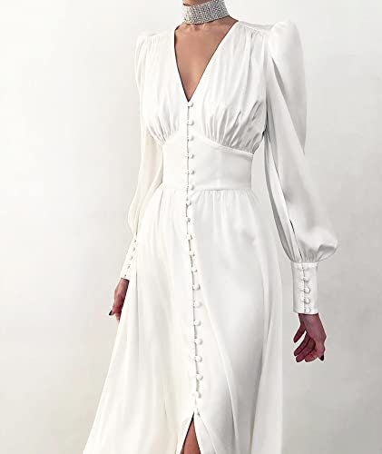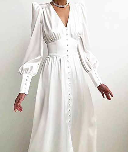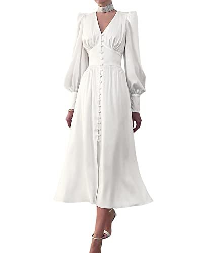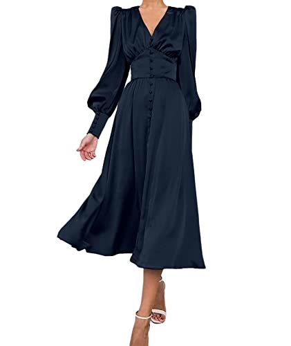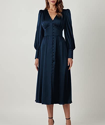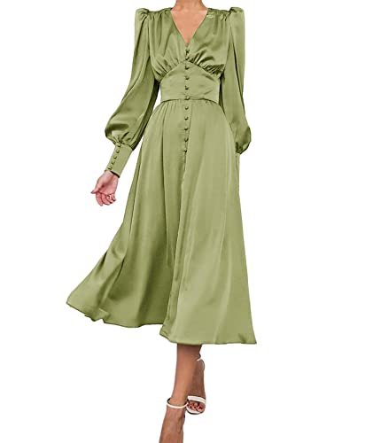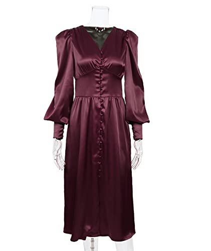 - 💗 Design: Långa ärmar, V-hals, enfärgad, puffärmar, lyktärmar, knappdown, en rad satin midiklänning.