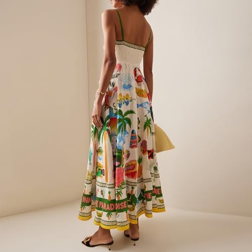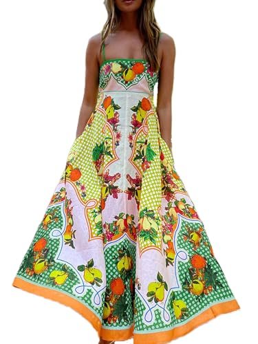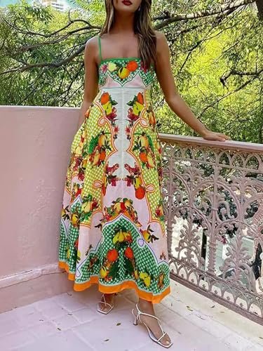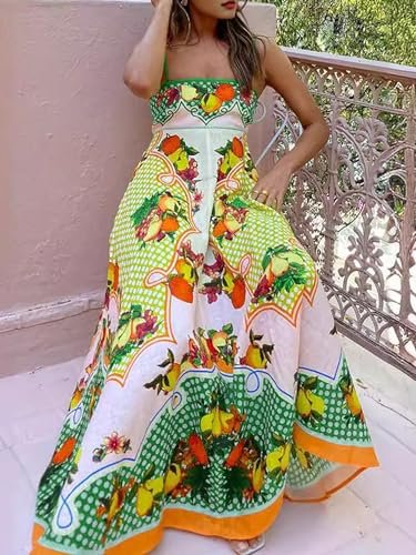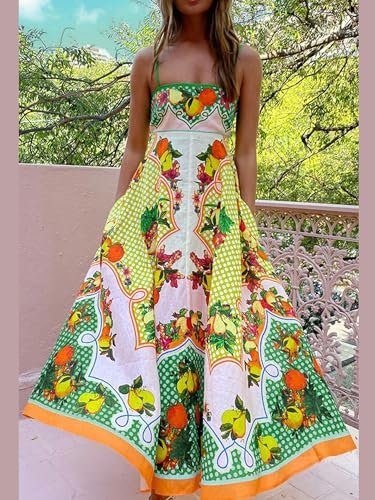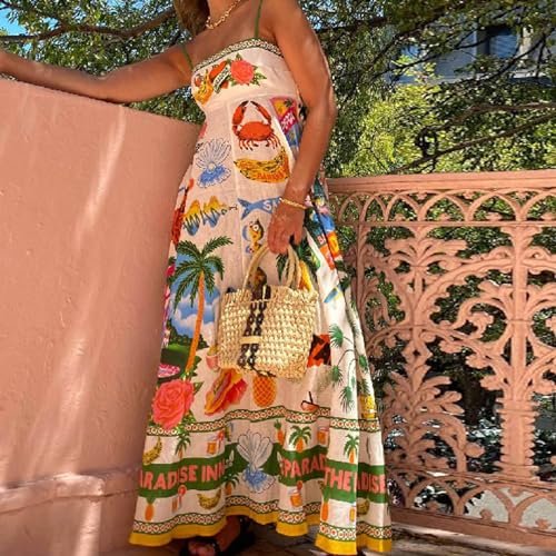 • Design: Etniskt ormtryck, justerbar spagettirem, ärmlös, fyrkantig hals, lång maxistrandklänning, hög midja, flödande fåll, sommar kami-klänningar för kvinnor, sexig rygglös lång maxiklänning, festklubbkläder, flerfärgad lappverksklänning, volang a-linje maxiklänning.