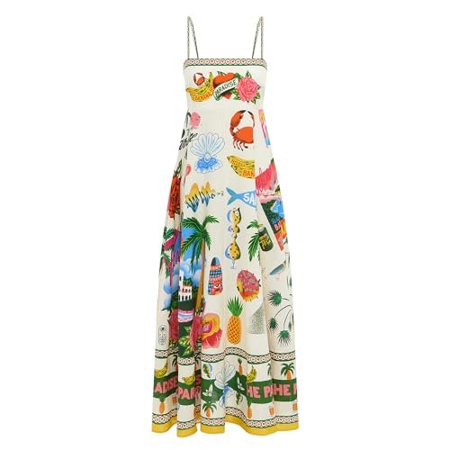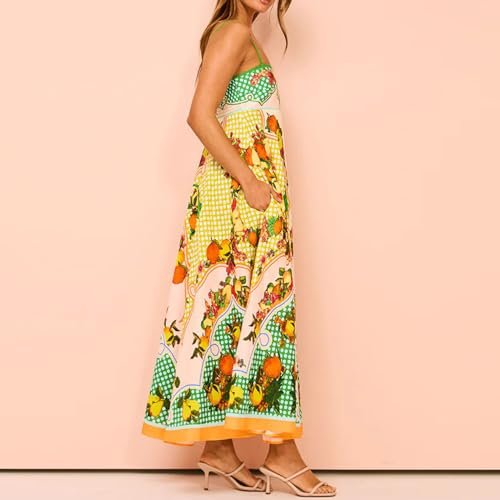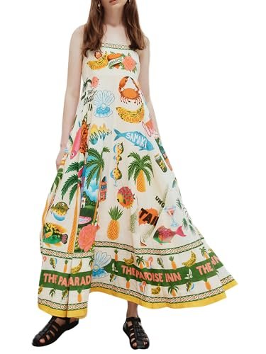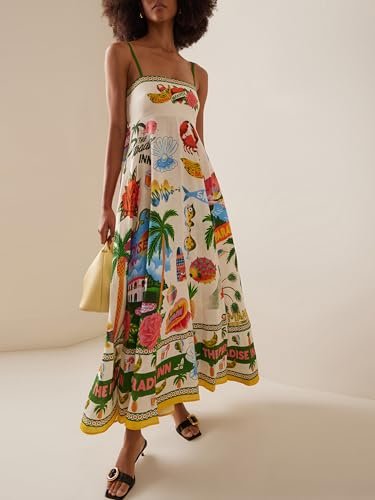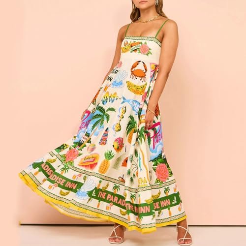 YILEEGOO Dam bomull linne spagettirem lång maxiklänning etnisk...