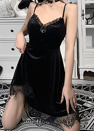 - [Miniklänning] De gotiska damkläderna är gjorda av högkvalitativt sammetstyg, mjukt och hudvänligt. Justerbara tunna axelremmar, sexig rygglös axellös klänning, bröllopsgäst klänning damer