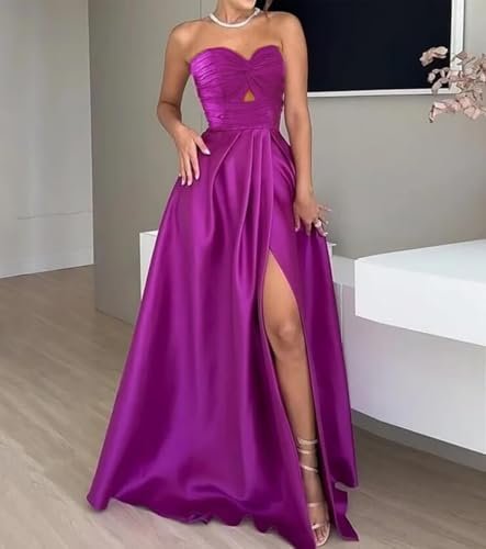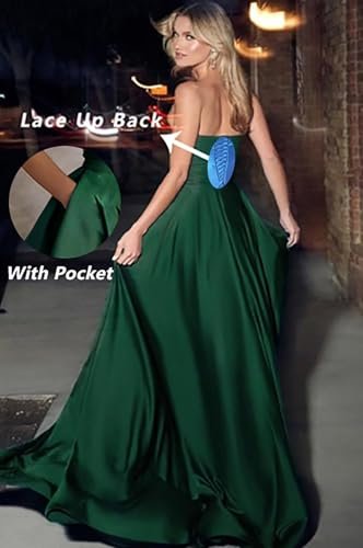 - 🌸Funktioner: Denna axelbandslösa brudtärneklänning har klassisk sweetheat hals, med fickor, en linje, golvlängd, satin, hög midja, veckad, lång balklänning, hög midja.