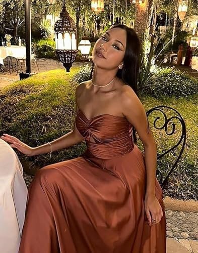 ZCXCsfp Axelbandslös satin brudtärneklänningar en linje långa balklänningar...
