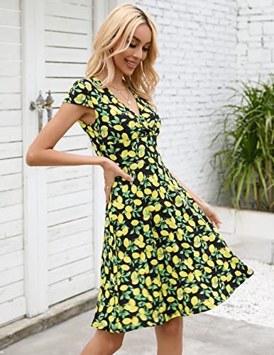 Zeagoo Dam A-linjeklänning V-ringad blommig klänning eleganta sommarklänningar...