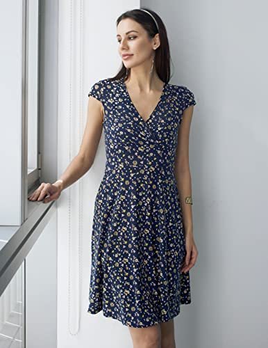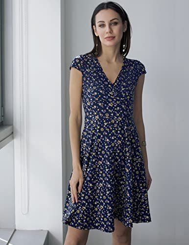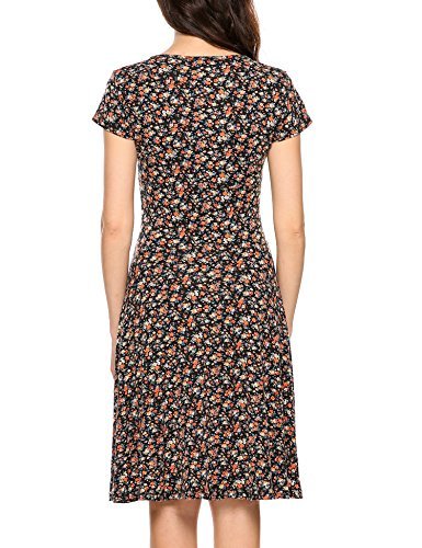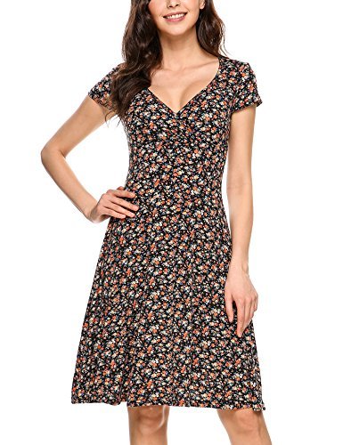 - Den blommiga klänningen har en klassisk, A-linjeskuren, en V-ringning och en knälång . Den smala passformen på överkroppen på blomklänningen för damer visar din sexiga figur.