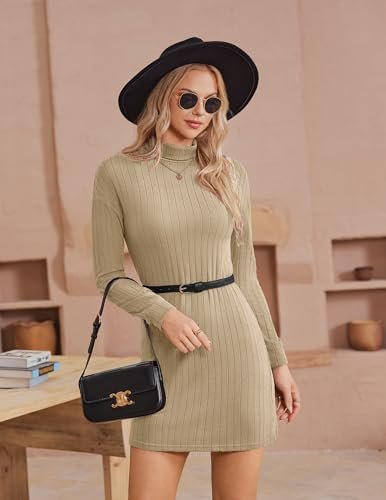 Zeagoo Polokrage klänning dam stickad klänning långärmad ribbstickad...
